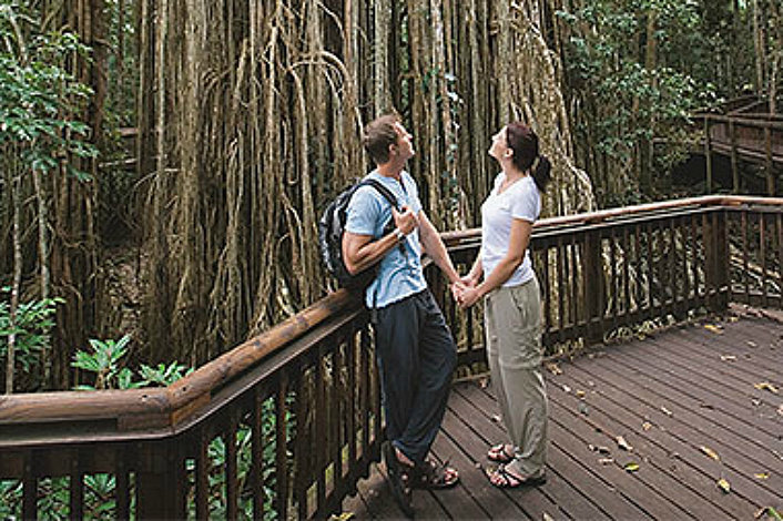 As the afternoon starts to roll on, we head to the Curtain Fig Tree. Here 15 meter high tree roots tower above, like a 3 story building; keep your eyes peeled for the elusive Lumholtz Tree Kangaroo.